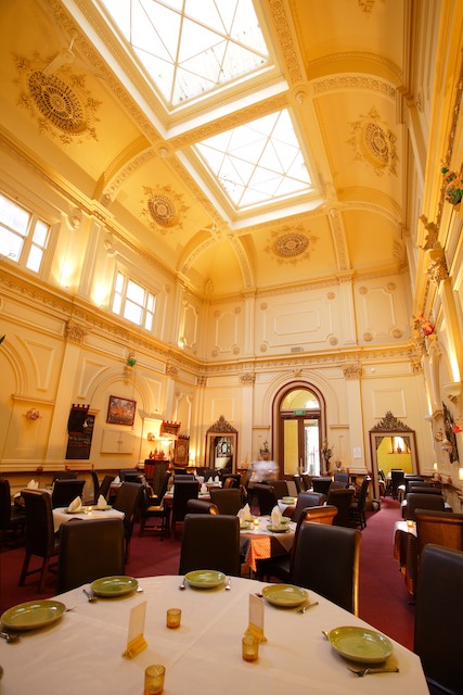 A view of the restaurant from the old bank vault to the front entrance.